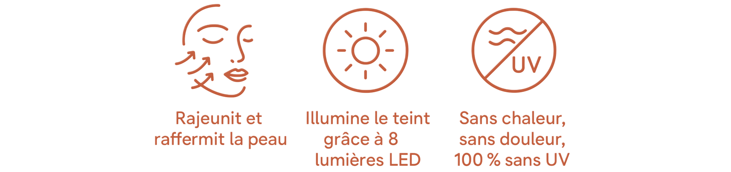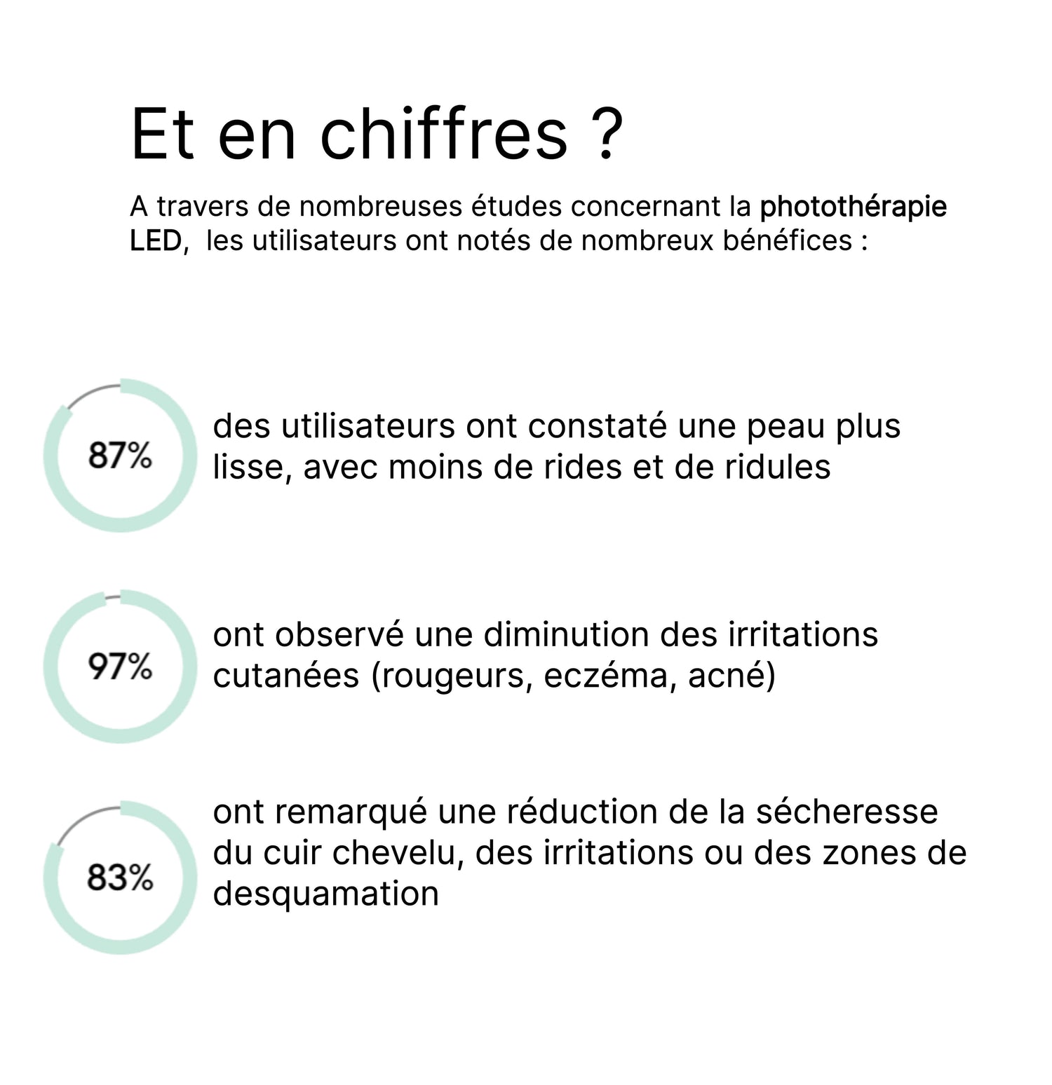 La lumière LED est non invasive, sans rayons UV, sans chaleur, et agit en douceur pour stimuler les mécanismes naturels de la peau sans provoquer d’irritation.