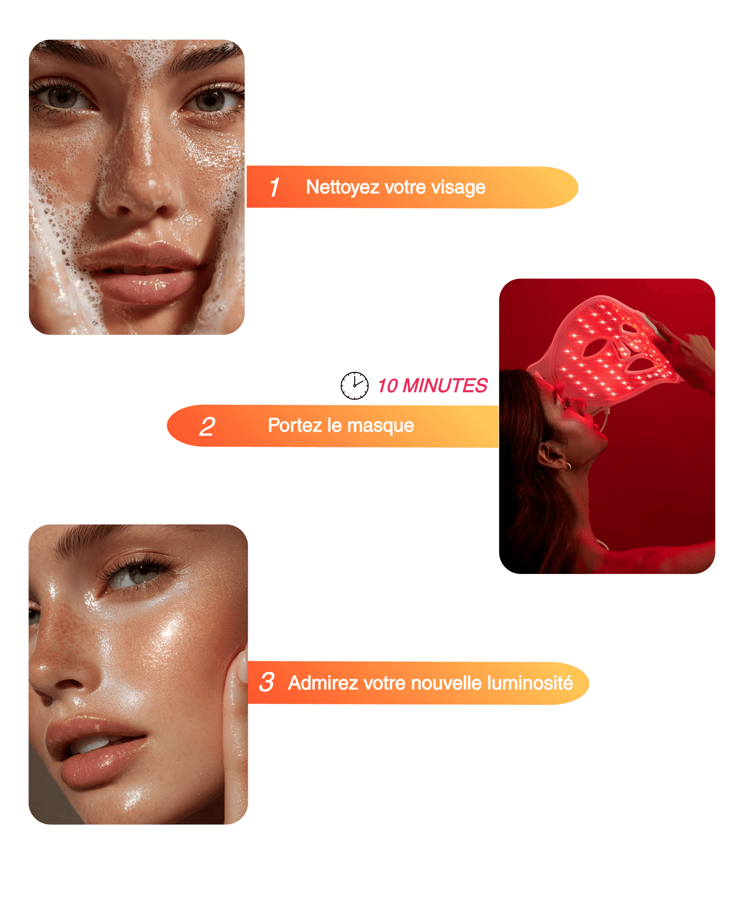 Nettoyez votre visage avant chaque utilisation pour favoriser la pénétration de la lumière LED.