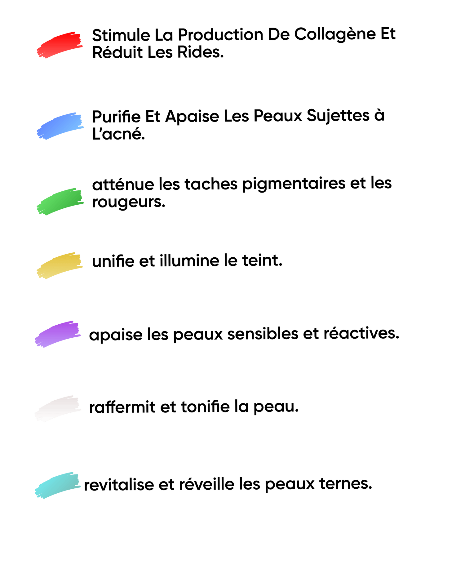 Chaque lumière agit spécifiquement pour répondre à un besoin de peau :